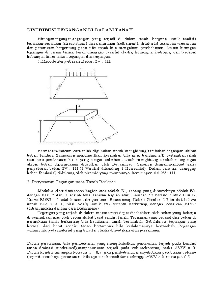 Sifat-sifat tegangan regangan dan penurunan bergantung pada sifat tanah bila mengalami pembebanan. Merupakan subsistem tersendiri yang terdiri dari. View Mektan II - 1-2 Distribusi Tegangan Tanahpdf from MATH 10 at Jambi University.
