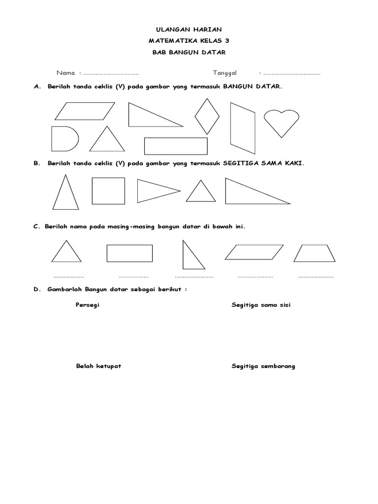 Latihan Soal Kelas 3 Sd Bangun Datar
